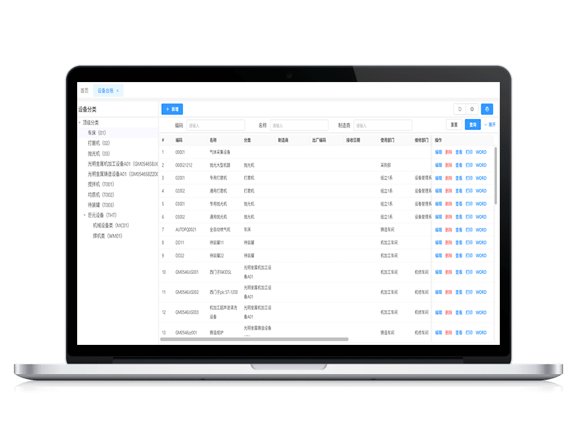 静态数据:设备型号、规格、采购成本、供应商、安装位置、保修期限、技术图纸等; 动态数据:运行时长、维护记录、故障历史、备件更换记录、能耗数据等; 价值:管理人员可随时查询单台设备的 “全生命周期档案”,例如 “某台机床已运行 5 年,累计故障 3 次,主要维护成本集中在轴承更换”。