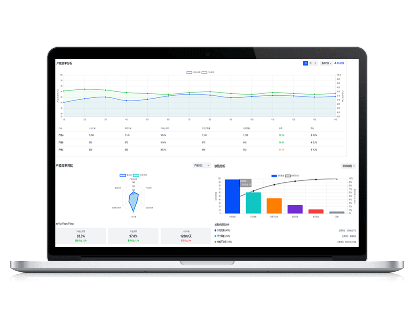 自动生成不良率趋势图、供应商质量排名、TOP 不良原因等可视化报表